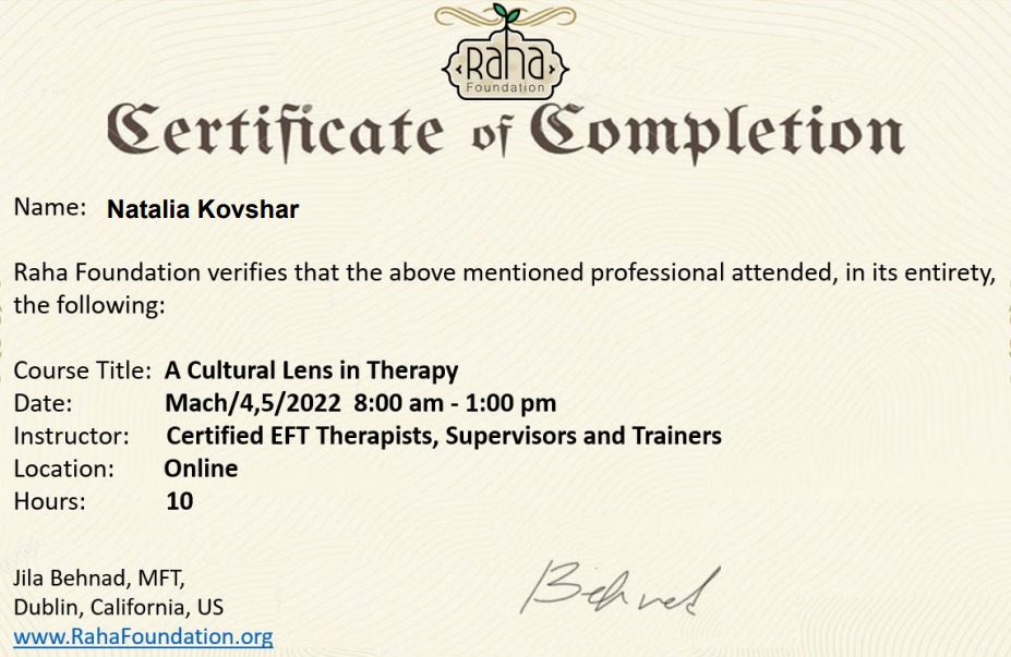 2020 – «Emotion Focused therapy for individuals» Dr. Leslie S. Greenberg, New York